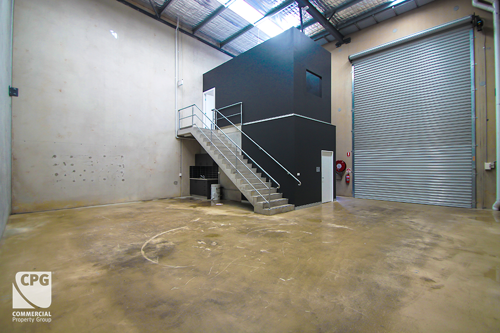 * Concrete precast concrete construction with motorised roller shutters and insulated metal clip lock roofing, with sky lights to allow abundant natural light into the warehouse.