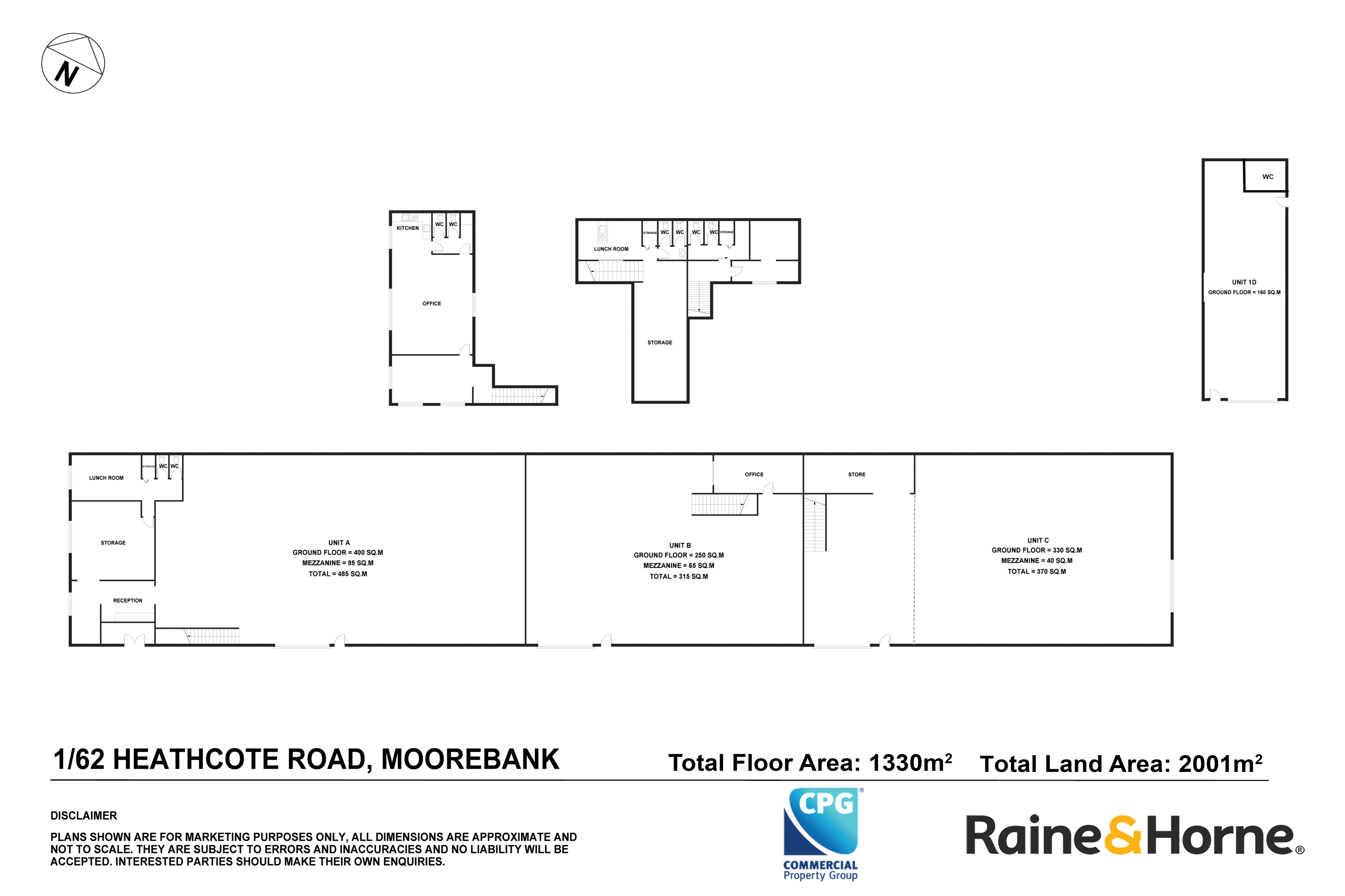 → Front building includes three warehouses, each with: