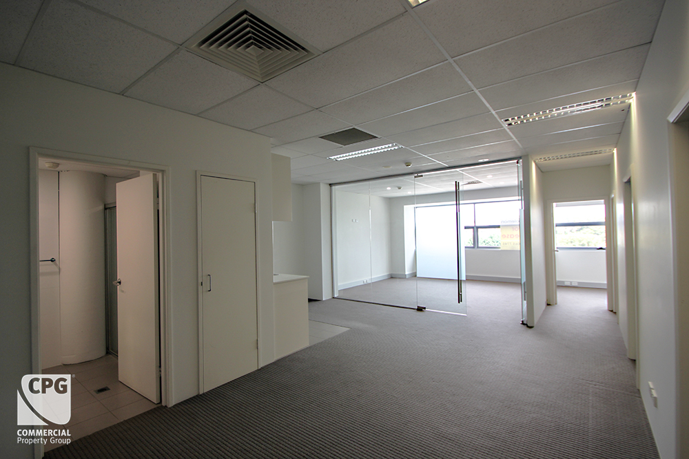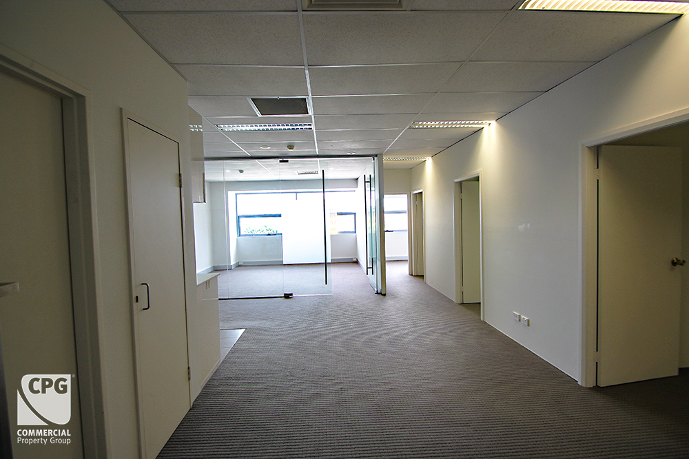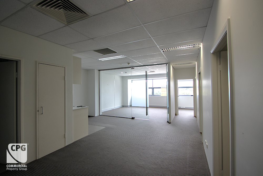 – Existing fit-out: 4 offices + boardroom + open-plan work area